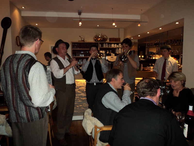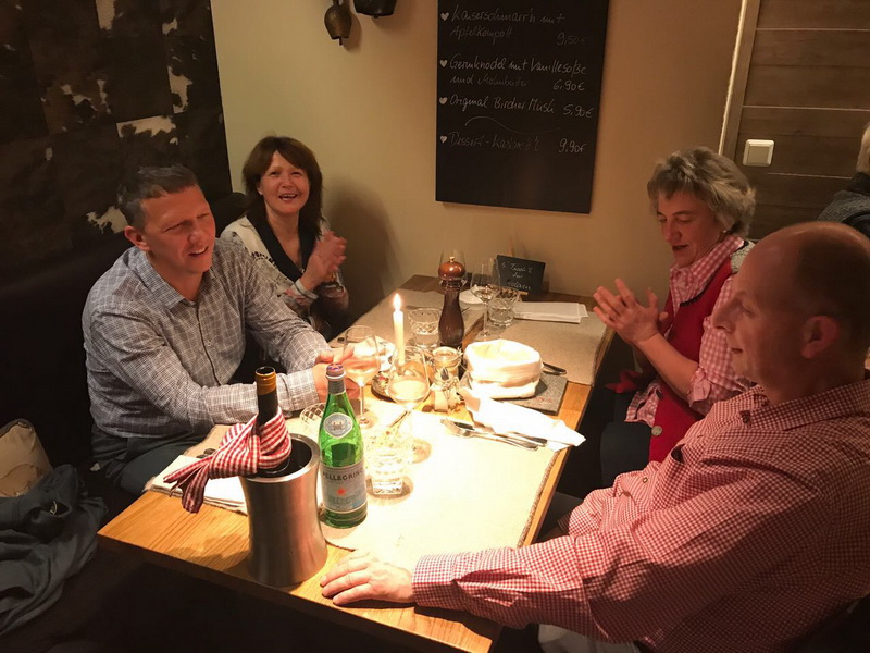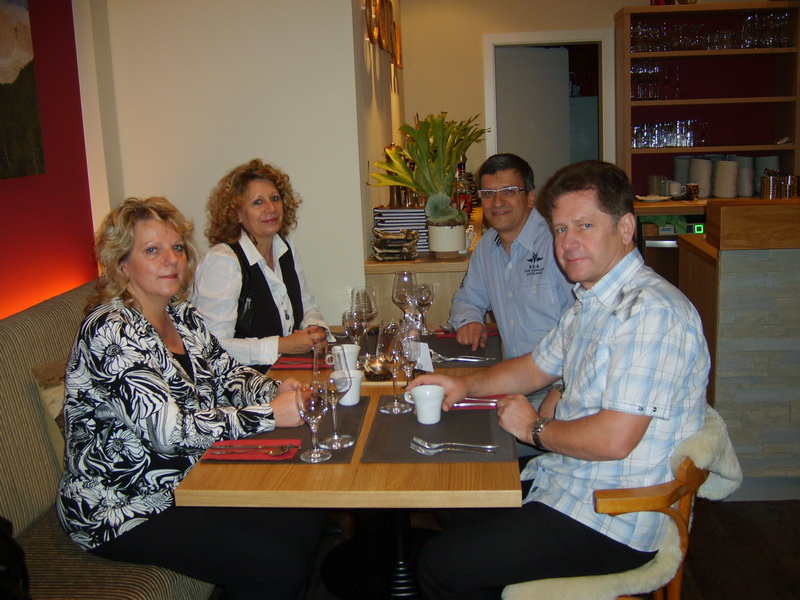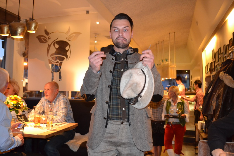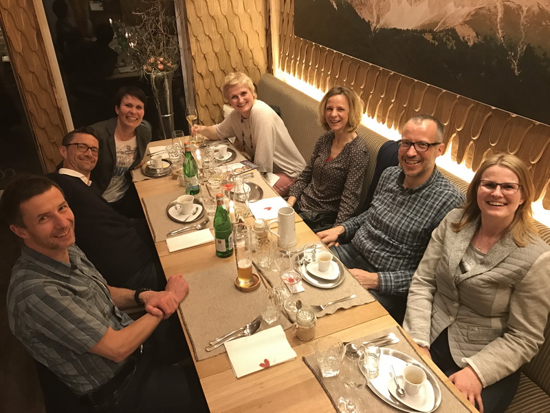 Einen originellen Aperitif, den passenden Wein, Tiroler Digestiv ... servieren Michael, Cristian, Lidia, Olaf und unsere Auszubildenden Najmudin, Albi und Arif.